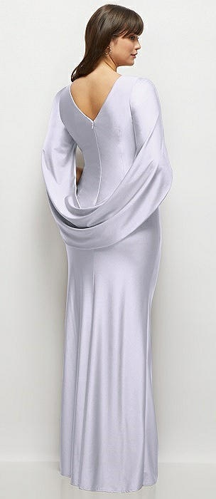 Draped Stretch Satin Maxi Dress with Built-in Capelet in silver dove