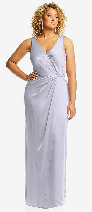 Faux Wrap Whisper Satin Maxi Dress with Draped Tulip Skirt in silver dove