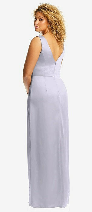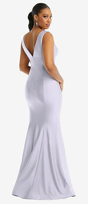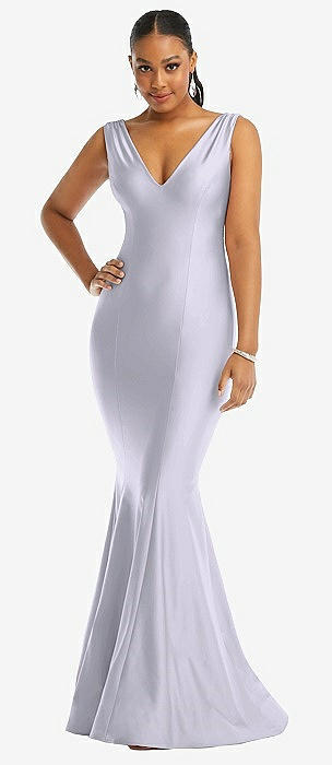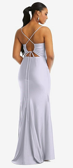 Cowl-Neck Open Tie-Back Stretch Satin Mermaid Dress with Slight Train in silver dove