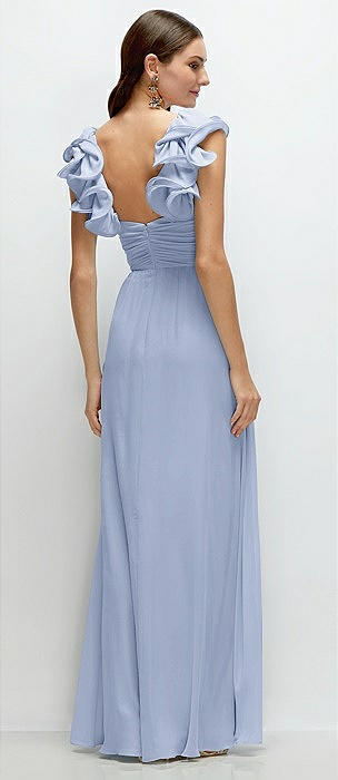 Dramatic Ruffle Edge Strap Chiffon Maxi Dress in sky blue