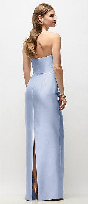Strapless Cuff Satin Maxi Dress with Column Skirt & Back Bow in sky blue