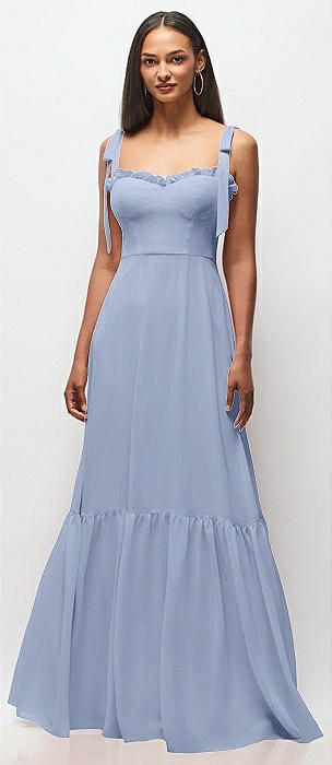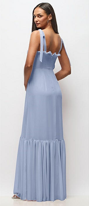 Tie-Shoulder Chiffon Maxi Dress with Front Slit in sky blue