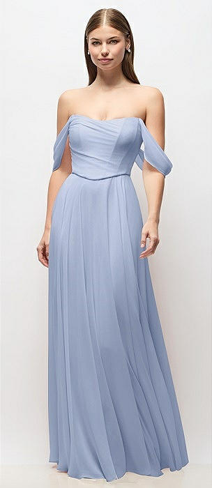 Off-the-Shoulder Basque Corset Chiffon Maxi Dress in sky blue