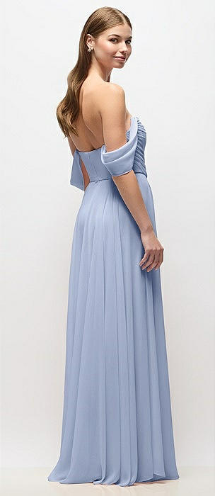 Strapless Chiffon Maxi Dress with Asymmetrical Ruched Drop Waist in sky blue