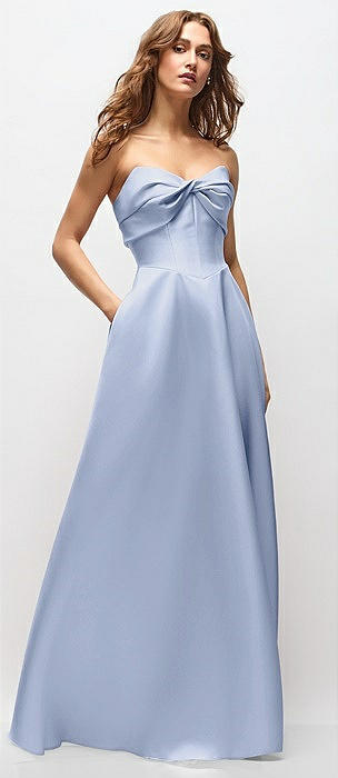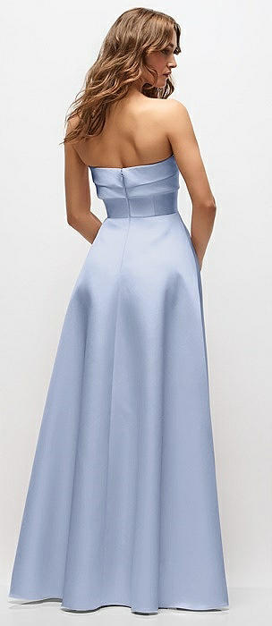 Strapless Bias Cuff Bodice Satin Gown with Pockets in sky blue