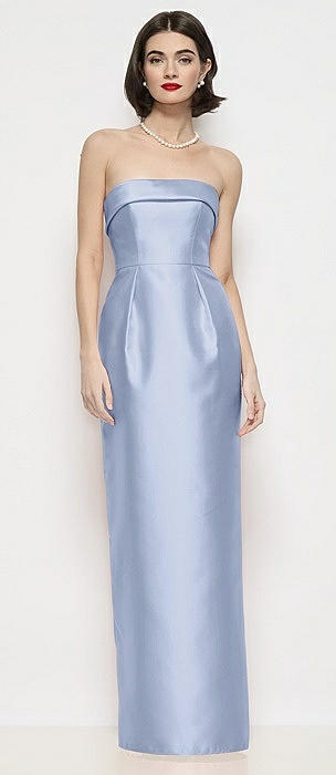 Strapless Cuff Neckline Satin Trumpet Gown in sky blue