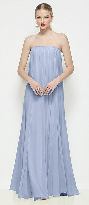 Strapless Shirred Chiffon Trapeze Maxi Dress in sky blue