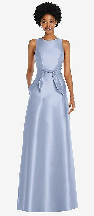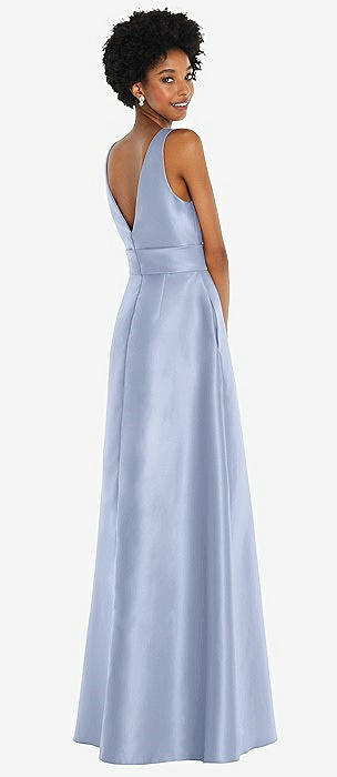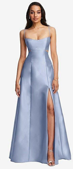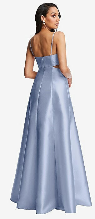 Open Neckline Cutout Satin Twill A-Line Gown with Pockets in sky blue