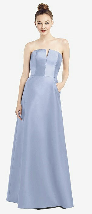 Strapless Satin Gown with Draped Front Slit and Pockets in sky blue