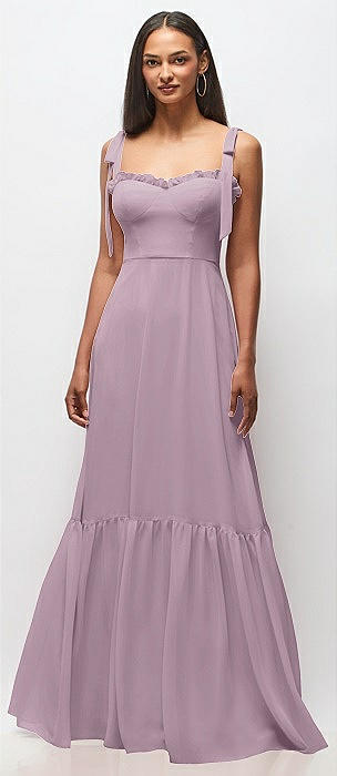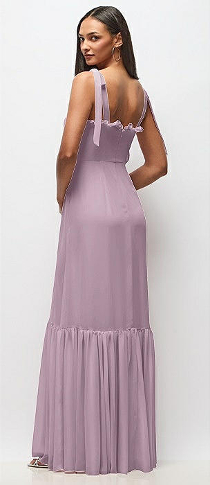 Ruffle Strap Chiffon Bustier Maxi Dress with Ruffle Hem A-Line Skirt in suede rose
