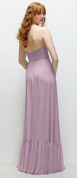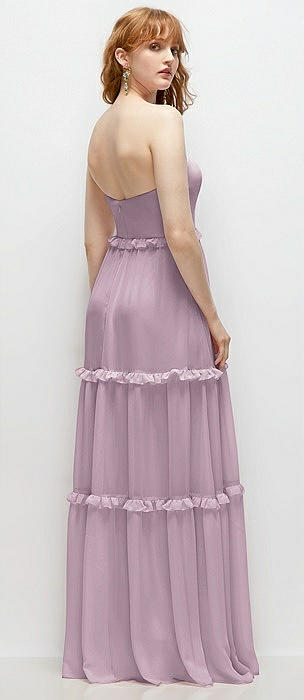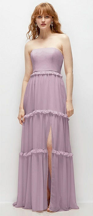 Strapless Chiffon Maxi Dress with Tiered Micro Ruffle Full Skirt in suede rose