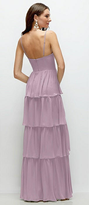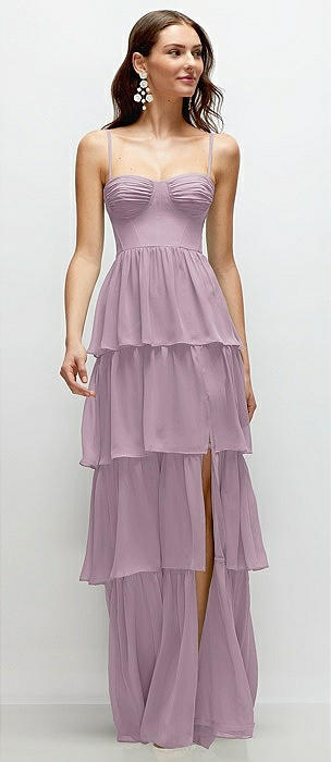 Bustier-Style Chiffon Tiered Ruffle Maxi Dress with Adjustable Straps in suede rose