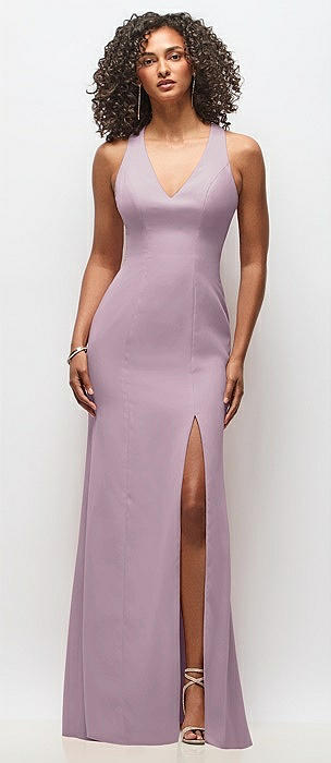 Notch Crepe Trumpet Gown with Front Slit in suede rose