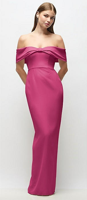 Off-the-Shoulder Crepe Column Maxi Dress with Bow-Pinch Detail in tea rose