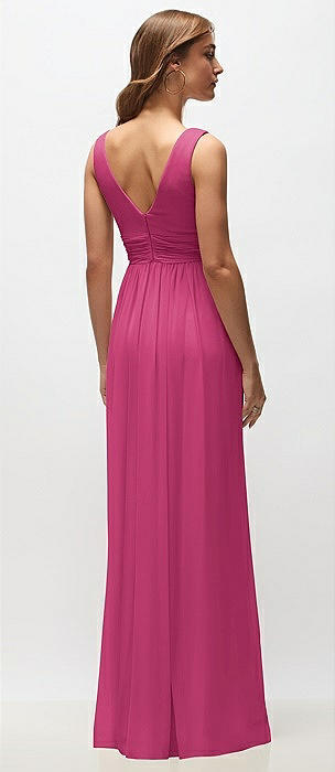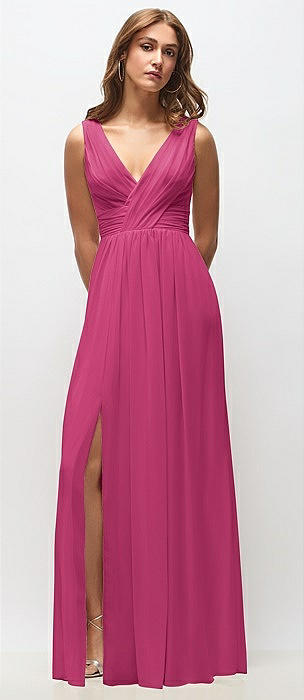 Sleeveless Draped Chiffon Maxi Dress with Front Slit in tea rose