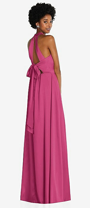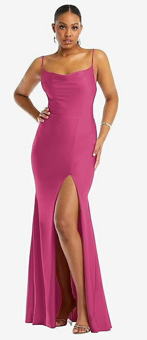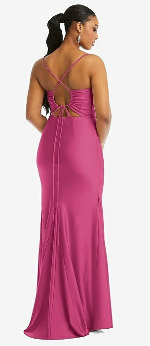Cowl-Neck Open Tie-Back Stretch Satin Mermaid Dress with Slight Train in tea rose