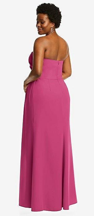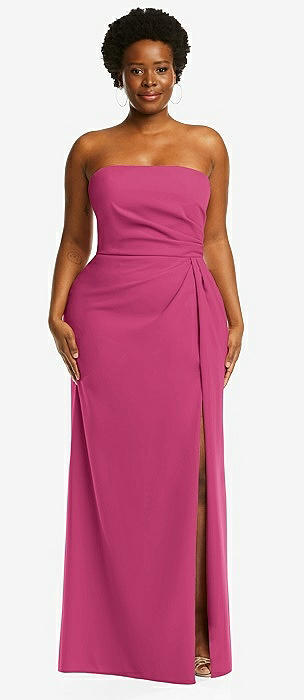 Strapless Pleated Faux Wrap Trumpet Gown with Front Slit in tea rose
