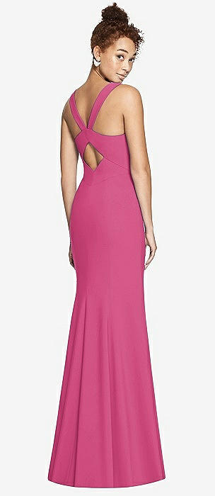 Off-the-Shoulder Criss Cross Back Trumpet Gown in tea rose