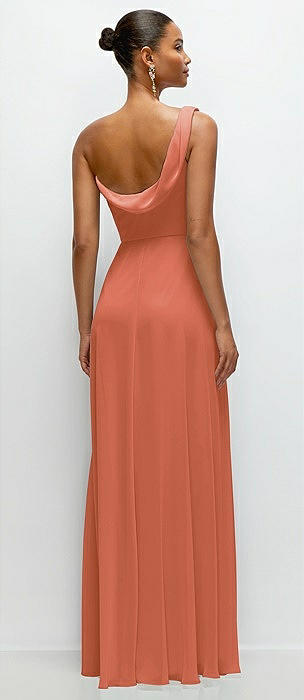 Chiffon One-Shoulder Maxi Dress with Draped Cowl Neckline in terracotta copper