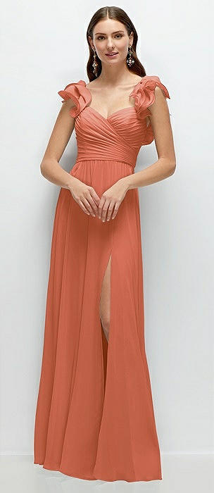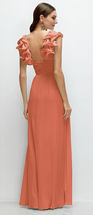 Dramatic Ruffle Edge Strap Chiffon Maxi Dress in terracotta copper