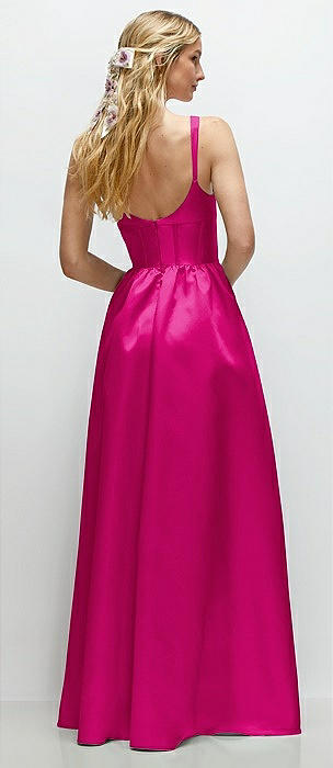 Strapless Bias Cuff Bodice Satin Gown with Pockets in think pink