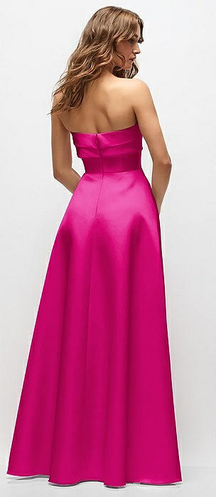 Strapless Draped Bodice Stretch Satin Column Maxi Dress in think pink