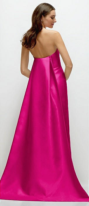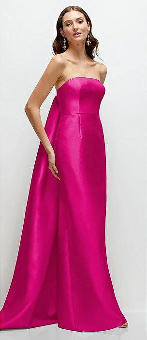 Strapless Satin Column Dress with Removeable Watteau Train in think pink
