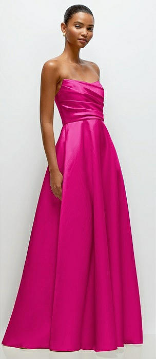 Strapless Draped Cat-Eye Satin Maxi Dress with Full Skirt in think pink