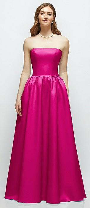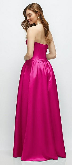 Strapless Satin Drop Waist Gown with Full Skirt in think pink