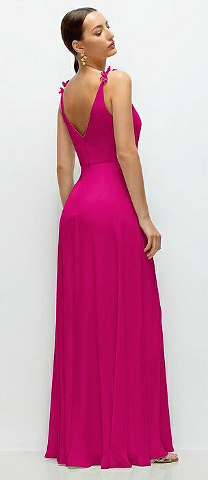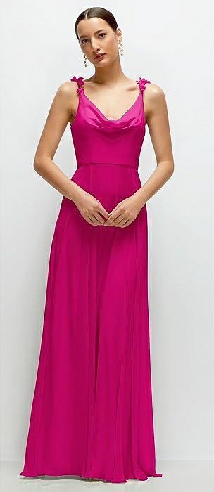 Cowl Neck Chiffon Maxi Dress with Hand-Worked Petal Straps in think pink