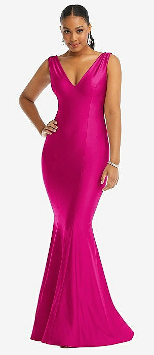Shirred Shoulder Stretch Satin Mermaid Dress with Slight Train in think pink