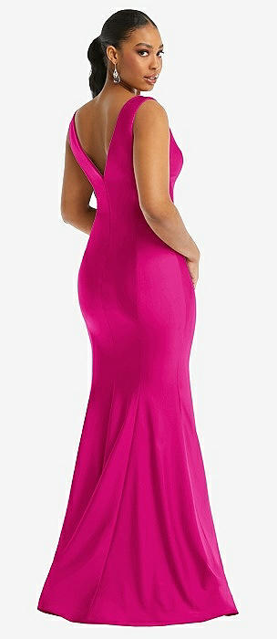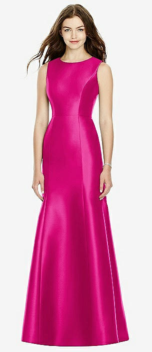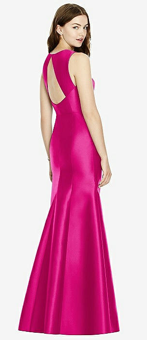 Sleeveless Satin Trumpet Gown with Bow at Open-Back in think pink