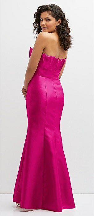 Strapless A-line Satin Gown with Modern Bow Detail in think pink