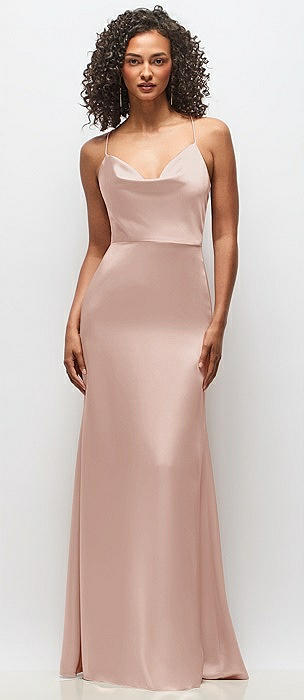 Cowl Neck Criss-Cross Back Satin Maxi Dress in toasted sugar