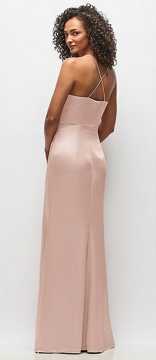 Draped Twist Halter Tie-Back Trumpet Gown in toasted sugar