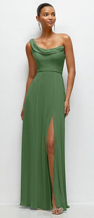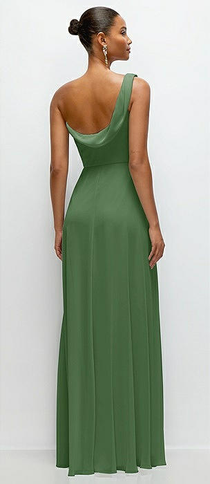 Chiffon One-Shoulder Maxi Dress with Draped Cowl Neckline in vineyard green