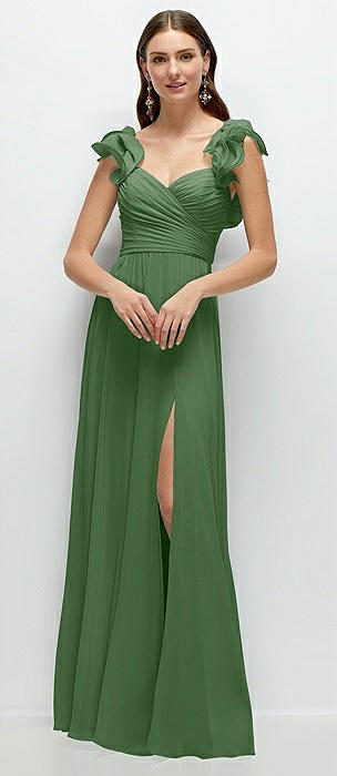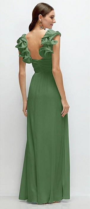 Dramatic Ruffle Edge Strap Chiffon Maxi Dress in vineyard green