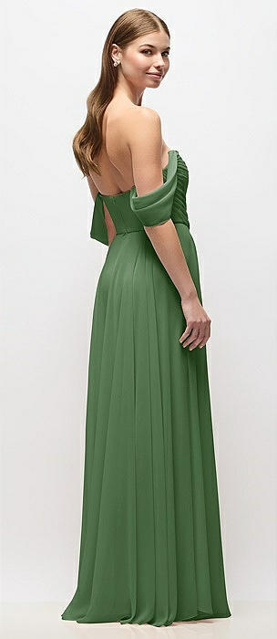 Chiffon Corset Maxi Dress with Removable Off-the-Shoulder Swags in vineyard green