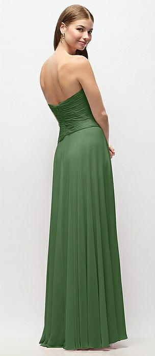 Strapless Pleated Surplice Chiffon Maxi Dress with A-Line Skirt in vineyard green
