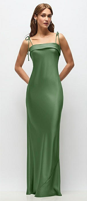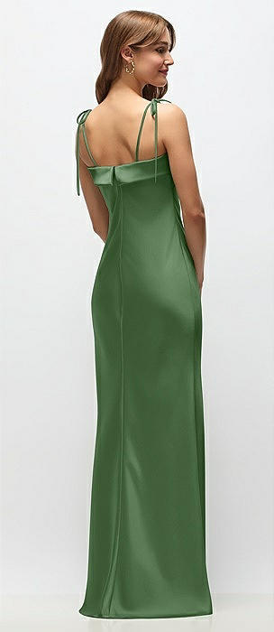 Cuff Neck Satin Bias Maxi Dress with Self-Tie Spaghetti Straps in vineyard green