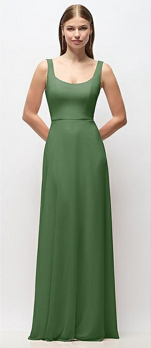 Scoop Neck Tank Strap Chiffon Maxi Dress in vineyard green