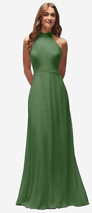 High Neck Halter Backless Maxi Dress in vineyard green