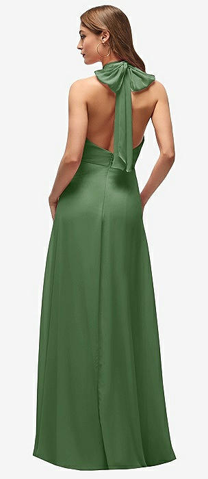 Draped Twist Halter Tie-Back Trumpet Gown in vineyard green