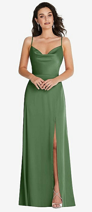 Cowl-Neck A-Line Maxi Dress with Adjustable Straps in vineyard green