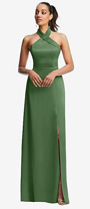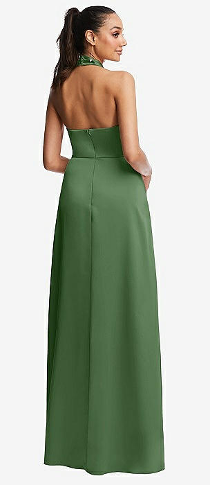 Draped Twist Halter Tie-Back Trumpet Gown in vineyard green