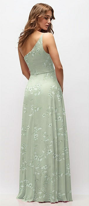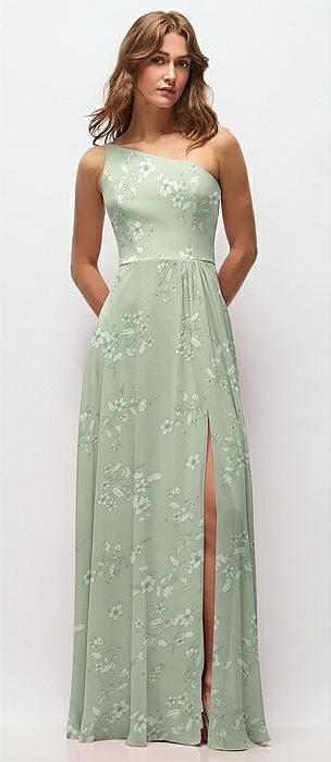 Chiffon One-Shoulder Maxi Dress with Circle Skirt in vintage primrose sage