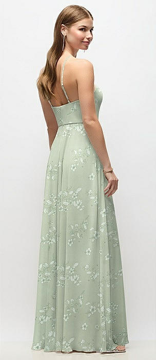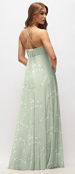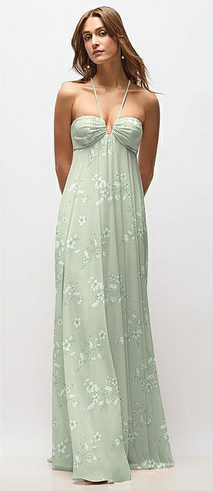 Empire Waist Floral Chiffon Halter Maxi Dress with Convertible Spaghetti Straps in vintage primrose sage