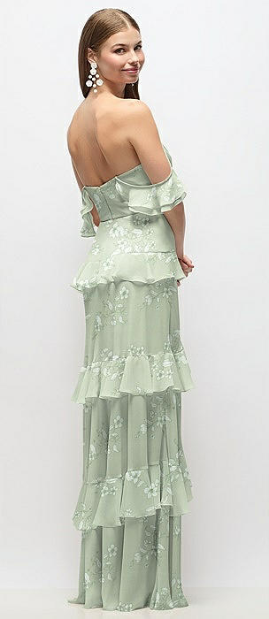 Bustier-Style Chiffon Tiered Ruffle Maxi Dress with Adjustable Straps in vintage primrose sage