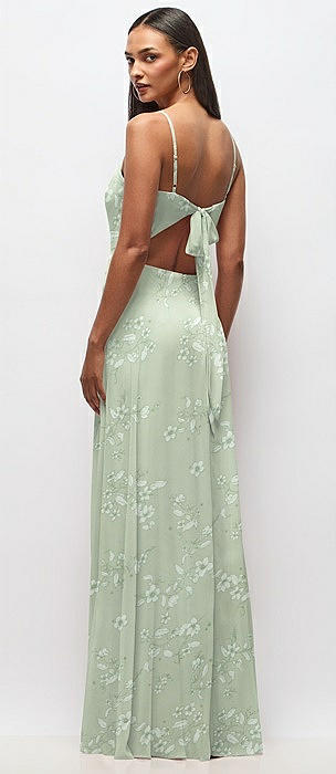 Tie-Back Cutout Maxi Dress with Front Slit in vintage primrose sage