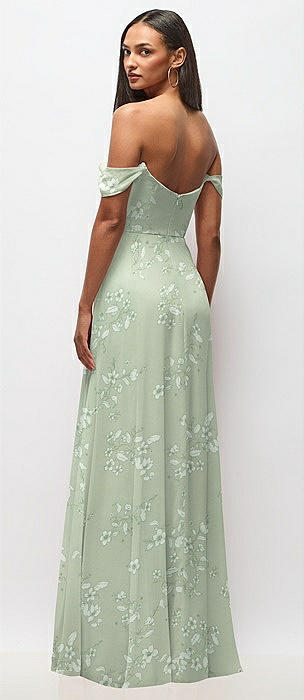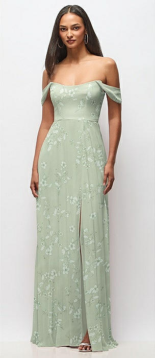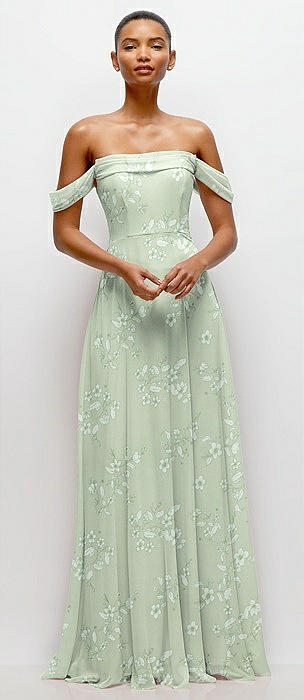 Off-the-Shoulder Draped Neckline Maxi Dress in vintage primrose sage